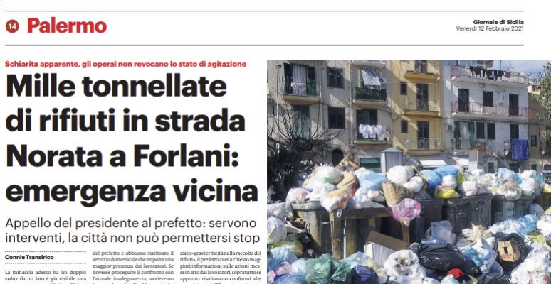 L’edizione odierna del “Giornale di Sicilia” parla anche della questione rifiuti a Palermo.