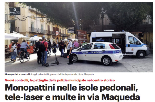 L’edizione odierna de “Il Giornale di Sicilia” si sofferma sui monopattini in città vietati nelle isole pedonali.