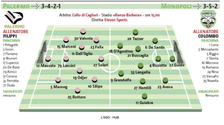 L’edizione odierna de “Il Giornale di Sicilia” ha stilato le probabili formazioni del match di oggi tra Palermo e Monopoli.