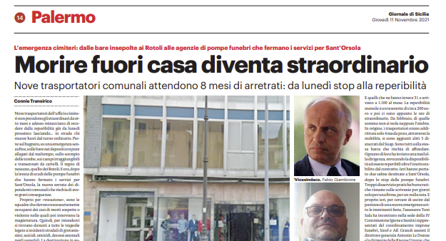 L’edizione odierna de “Il Giornale di Sicilia” si sofferma sul caos nei cimiteri a Palermo.