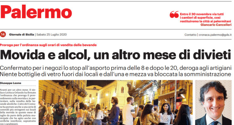 L’edizione odierna del “Giornale di Sicilia” si sofferma sulla proroga del provvedimento sulla movida e sulla vendita delle bevande alcoliche. «I controlli – ha dichiarato il sindaco Orlando – hanno dimostrato l’efficacia dell’ordinanza che era stata frutto di un confronto con gli esercenti e che ha mirato a tutelare un giusto equilibrio fra le esigenze e i diritti dei residenti nelle aree della movida, degli avventori e dei commercianti.