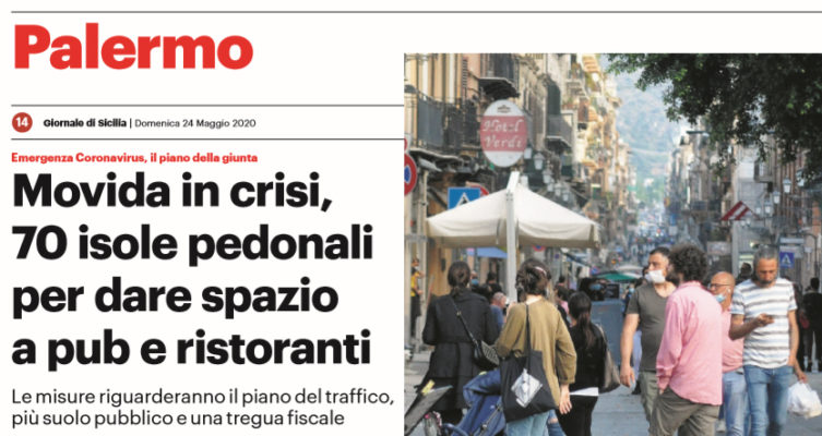 L’edizione odierna del “Giornale di Sicilia” si sofferma sulla movida di Palermo in crisi. L’obiettivo è istituire 70 nuove isole pedonali. Per proseguire con la possibilità ai ristoranti e titolari di locali notturni di estendere la propria occupazione del suolo pubblico fino al 50% in più di quanto già occupato. Per il sindaco Leoluca Orlando si tratta «di un piano allo stesso tempo semplice e complesso, ambizioso e realistico che nasce da uno sforzo collettivo di tutta la macchina comunale, sia nella sua parte politica, sia nella sua parte amministrativa e dirigenziale. Un piano che speriamo, entro pochi giorni,potrà dare risposte concrete ad alcune fra le categorie economiche più violentemente colpite dalla crisi. Un piano per il quale –aggiunge – contiamo sulla collaborazione massima di tutta la nostra comunità, dal consiglio comunale alle associazioni di categoria, ai singoli esercenti che saranno poi i beneficiari diretti dei provvedimenti». La pedonalizzazione riguarderebbe 69 aree: da Sferracavallo ad Acqua dei Corsari, passando per Uditore, Brancaccio, Baida, Molara, Zisa, Guadagna, Danisinni.