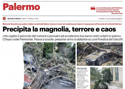 L’edizione odierna de “Il Giornale di Sicilia” si sofferma sulla storica magnolia crollata a Palermo.