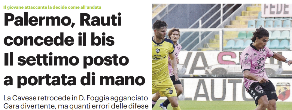 L’edizione odierna del “Giornale di Sicilia” si sofferma sulla vittoria del Palermo contro la Cavese.