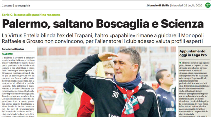 L’edizione odierna del “Giornale di Sicilia” parla della questione allenatore per il Palermo.