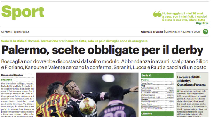 L’edizione odierna del “Giornale di Sicilia” si sofferma sulle scelte di Boscaglia in vista del derby Palermo-Catania.