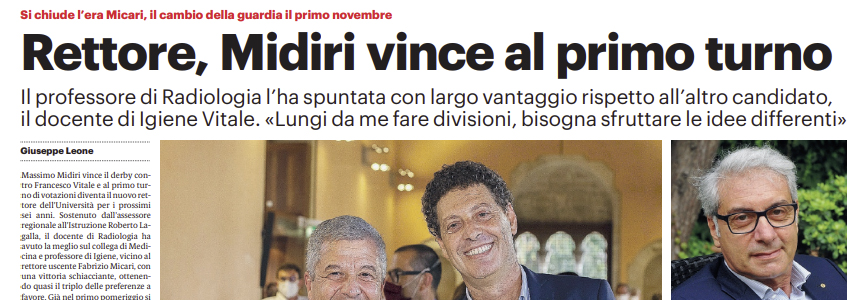 Si tratta di Massimo Midiri, docente di Radiologia, che ha avuto la meglio sul collega di Medicina Francesco Vitale con una vittoria schiacciante, ottenendo quasi il triplo delle preferenze a favore.