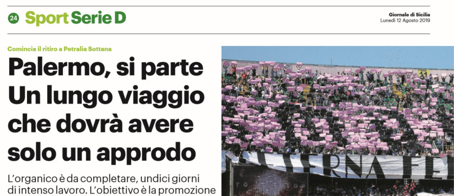 Il ritiro 2019 finalmente sta per iniziare. L’edizione odierna de “Il Giornale di Sicilia” analizza quelli che sono i tempi a disposizione del nuovo Palermo. Tempi strettissimi e squadra ancora da completare, sebbene la dirigenza rosanero abbia quasi completato l’organico sul fronte under. Mancano almeno un paio di 2001, considerando inoltre che uno dovrà per forza giocare titolare e al momento l’unico presente in squadra è il portiere Fallani, presumibilmente destinato a fare da vice all’esperto Pelagotti. Anche per questo, a Petralia, arriveranno alcuni ragazzini in prova. Pergolizzi è carico a mille per il ritorno sulla panchina rosanero, al suo fianco ci sarà il vice Libro, fino alla scorsa stagione allenatore in seconda della Primavera alle spalle di Scurto. Il preparatore atletico sarà Petrucci, un altro reduce della vecchia gestione del Palermo. Affronteranno il viaggio nelle Madonie anche altri due collaboratori tecnici: Compagno e Marotta, quest’ultimo sarà invece il preparatore dei portieri fin quando non si scioglieranno definitivamente le riserve sul ruolo. A meno che non arriviil «sì» di Sicignano, corteggiato da tempo, ma ancora fermo.