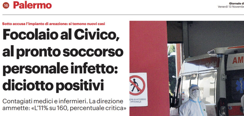 Gds: “Palermo. Sotto accusa l’impianto di areazione. Si temono nuovi casi. Focolaio al Civico, al pronto soccorso personale infetto. Diciotto positivi”