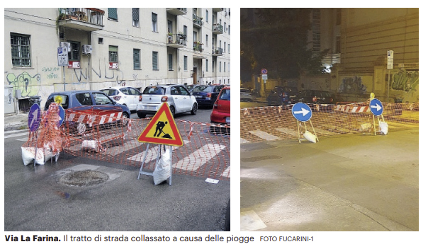 Ma ieri pomeriggio le auto circolavano liberamente passando ad una ad una, proprio accanto all’area transennata: la recinzione è stata rimossa e solo in serata i vigili urbani hanno chiamato la Rap per ripristinare rete e segnaletica. Eppure, continuare a consentire la circolazione è stata giudicata immediatamente cosa impossibile in quella situazione: i tecnici hanno subito constatato il collasso della sede stradale con tutti i pericoli che ne potrebbero conseguire dal passaggio di macchine.