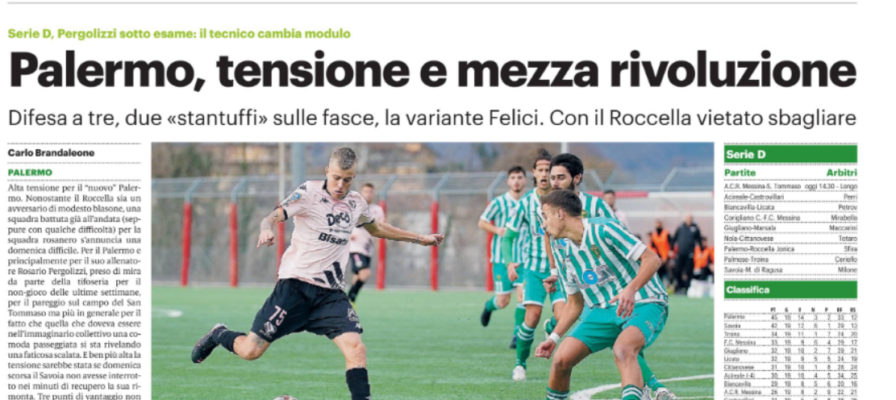Alta tensione per il Palermo. Nonostante il Roccella sia un avversario abbordabile, per la squadra rosanero s’annuncia una domenica difficile. Stando a quanto si legge sull’edizione odierna de “Il Giornale di Sicilia”, per il Palermo e principalmente per Pergolizzi, preso di mira da parte della tifoseria rosanero, per il pareggio rimediato nell’ultima sfida in campionato col San Tommaso, ma più in generale per il fatto che quella che doveva essere nell’immaginario collettivo una comoda passeggiata si sta rivelando una faticosa scalata. Tre punti di vantaggio sul Savoia non sono molti, ma almeno oggi il Palermo non rischierà di essere scavalcato in classifica. Non è facile dare il meglio quando si è sempre sotto pressione, ma allenare egiocare in una squadra come il Palermo comporta molti oneri e pochi onori per tutti. Alla gratificazione di giocare davanti a quindicimila spettatori e in un contesto casalingo ancora da Serie A corrisponde il dovere di offrire sempre spettacoli all’altezza delle aspettative. Cosa che non sempre è accaduta in questa stagione e bisogna tenere presente che l’ultimo match veramente ben giocato dai rosanero risale allo scorso 24 novembre, quando al Barbera il Messina fu battuto nettamentenon tanto nel punteggioma sul piano del gioco. Da quel giorno il buio e Pergolizzi non è riuscito a trovare rimedi nonostante i successi contro Giugliano, Castrovillari e Marsala.