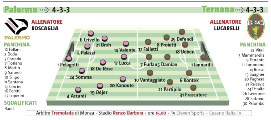 In alto le probabili formazione a cura del “Giornale di Sicilia”.