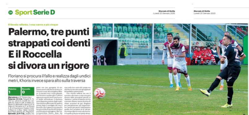 Gds: “Palermo, tre punti strappati coi denti. E il Roccella si divora un rigore”