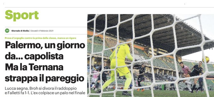 L’edizione odierna del “Giornale di Sicilia” si sofferma sulla sfida fra Palermo e Ternana.