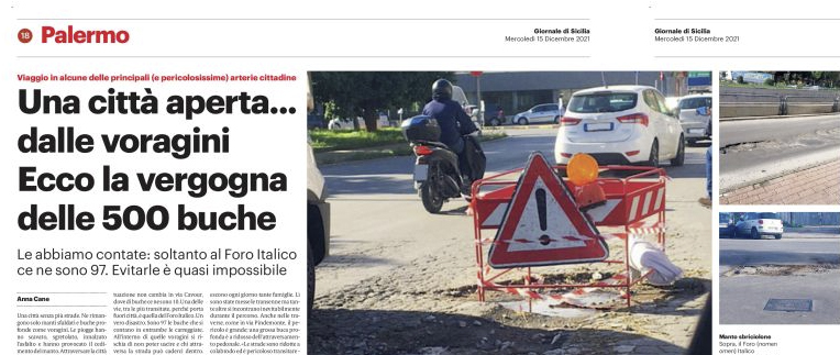 L’edizione odierna de “Il Giornale di Sicilia” si sofferma sulle buche e le strade dissestate di Palermo.