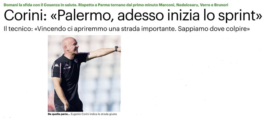 L’edizione odierna de “Il Giornale di Sicilia” si sofferma sulla gara tra Palermo e Cosenza e le parole di Corini.