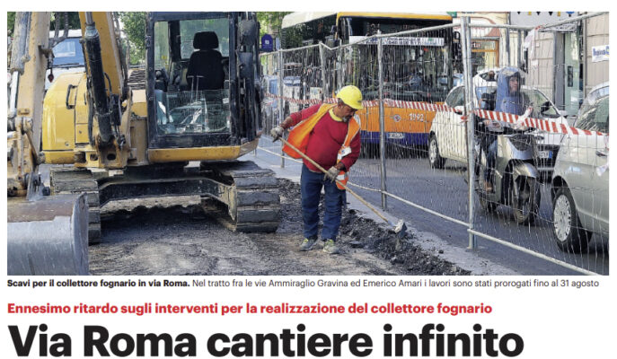 L’edizione odierna del “Giornale di Sicilia” si sofferma sul cantiere “infinito” di via Roma a Palermo.