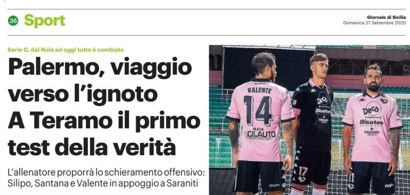 L’edizione odierna del “Giornale di Sicilia” parla di “viaggio verso l’ignoto” per il primo test del Palermo oggi a Teramo. Mai – scrive il quotidiano – il club rosanero aveva iniziato una stagione con tante incognite, quasi sospeso nello spazio infinito, plasticamente rappresentato dal silenzio degli stadi vuoti.