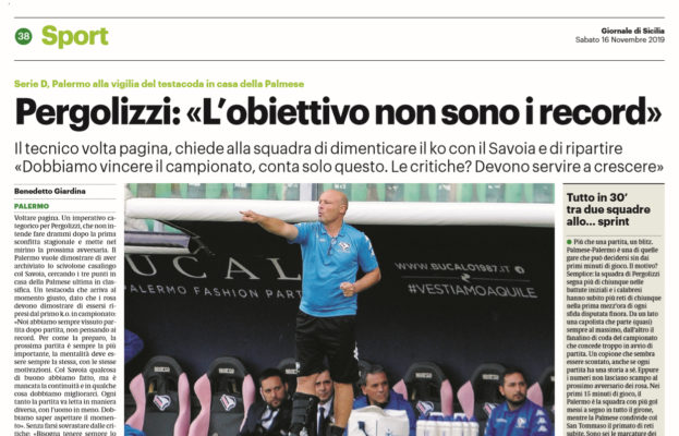L’edizione odierna del “Giornale di Sicilia” riporta le dichiarazioni di Rosario Pergolizzi, allenatore del Palermo: «Noi abbiamo sempre vissuto partita dopo partita, non pensando ai record. Per come la preparo, la prossima partita è sempre la più importante, la mentalità deve essere sempre la stessa, con le stesse motivazioni. Col Savoia qualcosa di buono abbiamo fatto, ma è mancata la continuità e in qualche cosa dobbiamo migliorarci. Ogni tanto la partita va letta in maniera diversa, con l’uomo in meno. Dobbiamo saper aspettare il momento». Senza farsi sovrastare dalle critiche: «Bisogna tenere sempre lo stesso standard – prosegue il tecnico – anche ad alti livelli ci sono polemiche. Chi non fa non sbaglia mai, io vado avanti col mio lavoro pensando non ai record, ma all’obiettivo, ovvero vincere il campionato. Le critiche devono servire per crescere, altrimenti chi le fa se le piange da solo». Ancora dubbi di formazione, per l’allenatore palermitano, che deve fare i conti con l’assenza di Doda, convocato dall’Under 20 dell’Albania:«È una soddisfazione incredibile, ma in quel ruolo ci manca un 2000 e per sostituirlo bisogna fare cambiamenti. Forse deciderò la formazione a mezzogiorno prima della partita.Non è perché non abbia le mie idee, ma vorrei sbagliare il meno possibile. Il problema è relativo agli under, bisogna anche saper muovere i giocatori perché lo impongono le regole. Sono le regole ad essere sbagliate, non i cambi». Contro il 3-5-2 dei calabresi, inoltre, Pergolizzi potrebbe valutare possibili accorgimenti tattici, con l’inserimento di un trequartista: «Magari non subito a partita iniziata, può essere un centrocampista in più o un difensore». Ficarrotta? «Le tre giornate erano prevedibili, stanno utilizzando lo stesso metro per tutti. Il suo messaggio è qualcosa che si è sentito di fare, ma sa qual è il pensiero mio e della società. Ha il tempo per scusarsi con i fatti, non a parole. Per lui, come per gli altri palermitani, è importante fare meno errori possibili e vivere la città nella maniera giusta, pensando al calcio e cercando di trarre insegnamenti dagli errori. Se non lo fai, rimani dove sei stato. Forse in quel momento doveva gestire il suo istinto in maniera diversa». In attacco, dove i rosa al momento si ritrovano con una rotazione corta, è pronto a tornare dal primo minuto Santana: «Si è allenato tutta la settimana col gruppo – prosegue Pergolizzi – se sta bene gioca. Nelle ultime partite si è messo a disposizione al 101% e se a 38 anni hai questa mentalità, può essere molto importante, soprattutto per i giovani». Quelli che il tecnico ha spronato sin dalla ripresa degli allenamenti, dopo la sconfitta col Savoia: «Martedì ho detto loro quello che continuo a dire dal 12 agosto: ci saranno momenti positivi e negativi, anche se la gente non vuole sentirselo dire e questo entusiasmo fa piacere. Per il Palermo è il percorso più difficile della sua storia, questo deve responsabilizzarci, ma dobbiamo stare con i piedi per terra, affrontando le partite con consapevolezza e umiltà». Anche sottovalutare la Palmese, per quanto ultima in classifica, sarebbe un errore: «Noi ci siamo allenati cercando di lavorare su un campo con le misure del loro – conclude il tecnico – è per una questione di dettagli. Hanno un ottimo allenatore, che viene dal settore giovanile della Reggina e ha sempre fatto bene. Gioca col 3-5-2, sfrutta le ripartenze e sa difendersi, ma dobbiamo far venire fuori la consapevolezza della nostra forza, pur sapendo che la Palmese ci metterà l’anima come tutti. La sconfitta, che arriva dopo dieci vittorie, se la sappiamo leggere bene può servirci per dare ulteriori motivazioni. Se invece consideriamo che tutto quello che abbiamo fatto di buono non serve,allora non abbiamo capito nulla. Perché questo vittorie le abbiamo ottenute col sacrificio e questo campionato lo vinciamo con la testa».