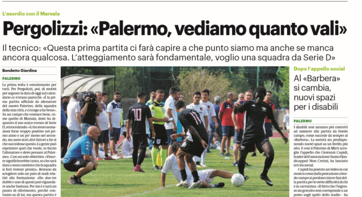 L’edizione odierna de “Il Giornale di Sicilia” ha analizzato le parole rilasciate in conferenza da Pergolizzi in vista della prima di campionato. Per il tecnico, ci sono tanti motivi per segnare la data di oggi sul calendario: «È la prima partita ufficiale da allenatore del nuovo Palermo, della squadra della mia città, e ci tengo a far bene. Marsala la conosco bene? Lì ho avuto sensazioni forse troppo positive nel primo anno e un po’ meno nel secondo, ma sono stati altri fattori a far sì che succedesse questo. La gente può esprimere quel che vuole, io faccio l’allenatore e devo pensare al Palermo. Vincere significherebbe tanto, so che sarà dura e sono convinto che la squadra si farà trovare pronta». Restano da sciogliere solo un paio di nodi relativi alla formazione: «Ho due-tre dubbi e uno di questi può riguardare anche Santana. Per me è e sarà un punto di riferimento, perché contiamo su di lui, ma questa partita è diversa dalle altre». Il tecnico palermitano ha poi continuato dicendo: «Immagino di trovare una squadra e un ambiente motivati, so che saremo seguiti dai nostri tifosi e avremo tutto per giocarcela alla pari, dobbiamo essere convinti e propositivi. Alla squadra ho detto che non è in questa partita che vinceremo il campionato, ma che si tratterà di un lungo percorso. La gente aspetta i risultati, ma credo che col lavoro, con la continuità e con la mentalità possiamo fare bene». Fare bene il primo passo, però, potrà essere utile: «Questa partita ci dirà ancor di più quello che siamo, quello che manca o se siamo già oltre. Farà da apripista, servirà a valutare tutto. Anche me stesso».