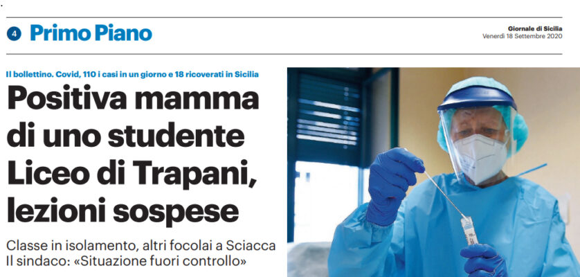 Gds: “Positiva mamma di uno studente. Liceo di Trapani, lezioni sospese. Altri focolai a Sciacca. Il sindaco «Situazione fuori controllo»”