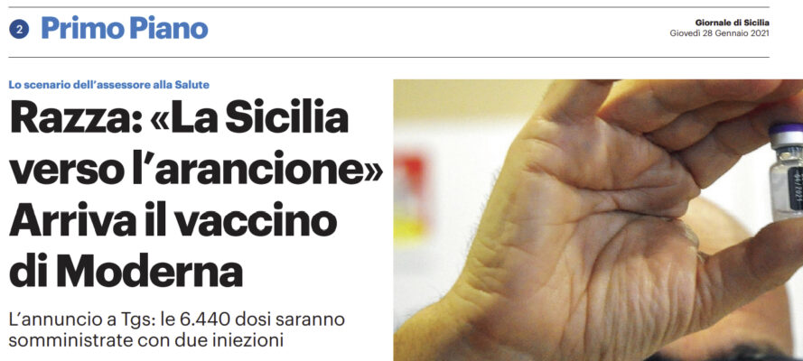 Gds: “Razza «La Sicilia verso l’arancione». Arriva il vaccino di Moderna”