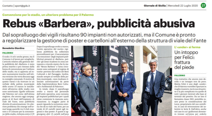 L’articolo relativo alla gestione della pubblicità del «Barbera» è stato prima inserito e poi rimosso dalla bozza di convenzione per l’utilizzo dello stadio – scrive il quotidiano -, ma si appresta ad essere nuovamente inserito nell’ultima versione che verrà discussa oggi in consiglio comunale.