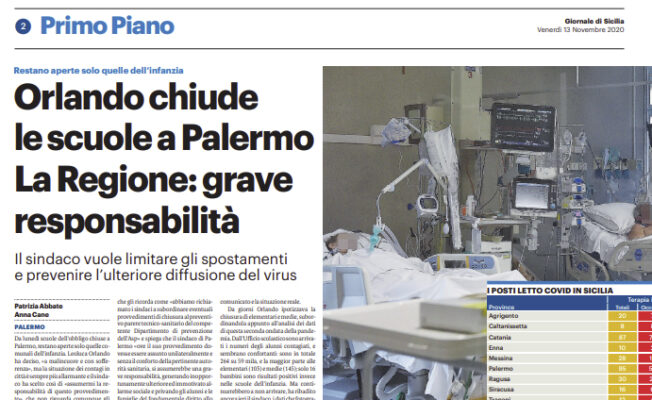 L’edizione odierna del “Giornale di Sicilia” si sofferma sulla chiusura delle scuole a Palermo.