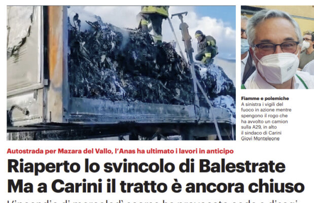 Ha riaperto lo svincolo autostradale di Balestrate. Nella vicina Carini, invece, proseguono i lavori sullo svincolo e non senza polemiche sull’incendio e i disagi che ne sono conseguiti.