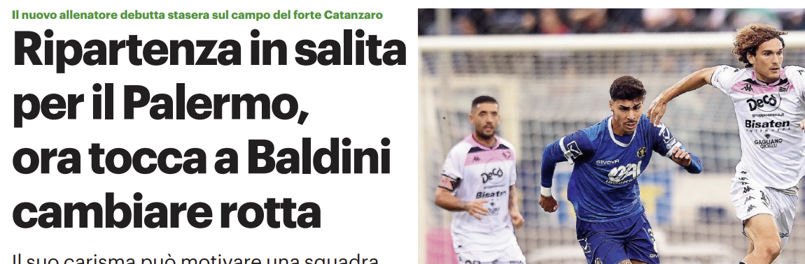 Gds: “Ripartenza in salita per il Palermo, ora tocca a Baldini cambiare rotta”