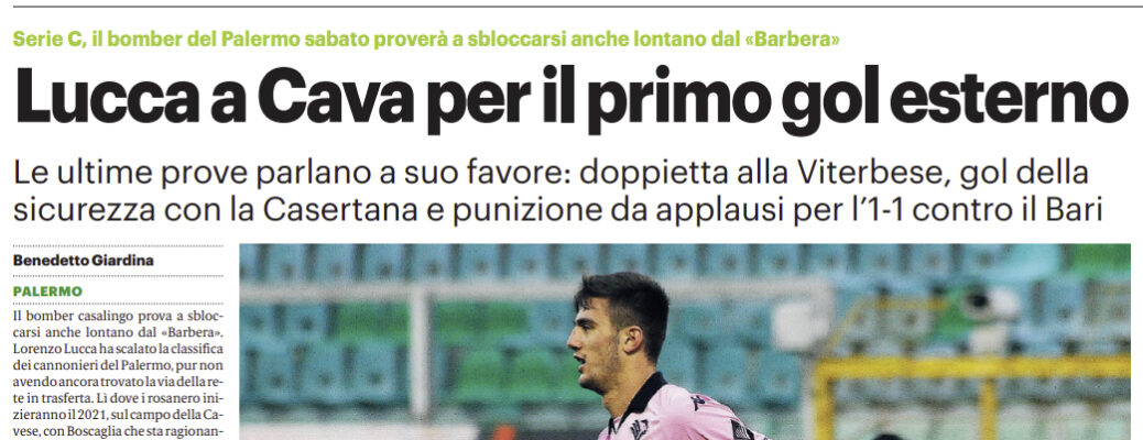 Gds: “Serie C, il bomber del Palermo sabato proverà a sbloccarsi anche lontano dal «Barbera». Lucca a Cava per il primo gol esterno”