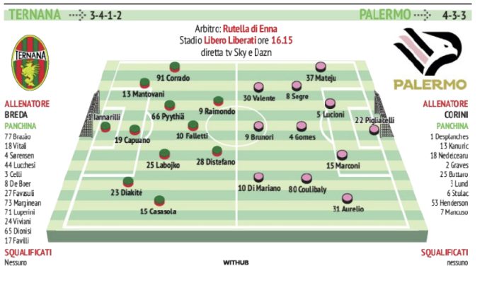 Gds: “Si riprende contro l’ultima in classifica, la squadra stavolta gioca anche per Corini. Le probabili formazioni di Ternana-Palermo”