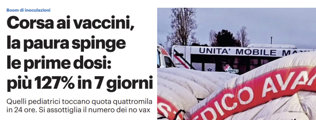 Gds: “Sicilia. Boom di inoculazioni. Corsa ai vaccini, la paura spinge le prime dosi: più 127% in 7 giorni”