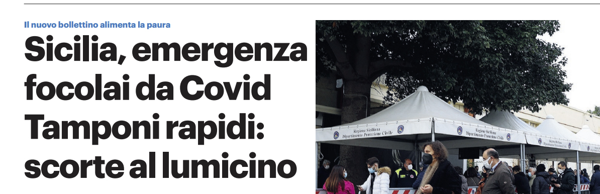 Gds: “Sicilia, emergenza focolai da Covid. Tamponi rapidi: scorte al lumicino”