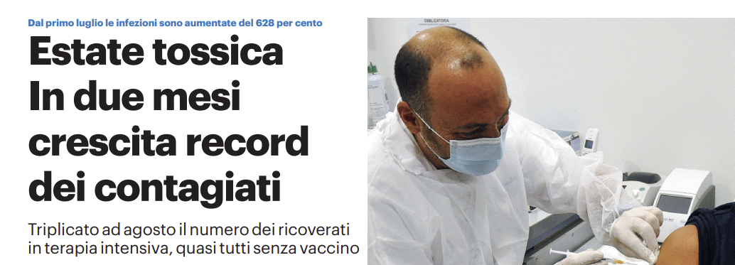 Nel giro di 31 giorni, un bacino di infezioni attive aumentato del 165% – del 628% se si inizia a contare dal primo luglio – un numero di pazienti più che triplicato, sia nelle terapie intensive che nei reparti ordinari, ben 322 vittime e un’incidenza di positivi sulla popolazione raddoppiata, schizzata quasi ai livelli di gennaio, quando l’epidemia era nel picco della sua seconda fase.