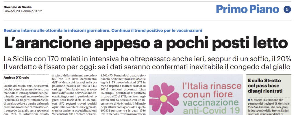 L’edizione odierna de “Il Giornale di Sicilia” si sofferma sulla situazione pandemica in Sicilia