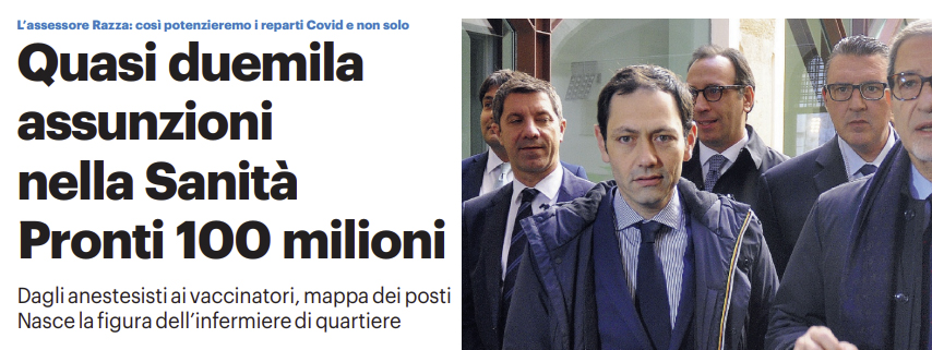Il totale della spesa ammonta a poco meno di 100 milioni ed è il budget che l’assessore alla Salute, Ruggero Razza, ha messo sul tavolo dei manager delle Asp e degli ospedali per potenziare tutti i reparti Covid, quelli esistenti e quelli che dovranno nascere da qui a breve – scrive il quotidiano -.