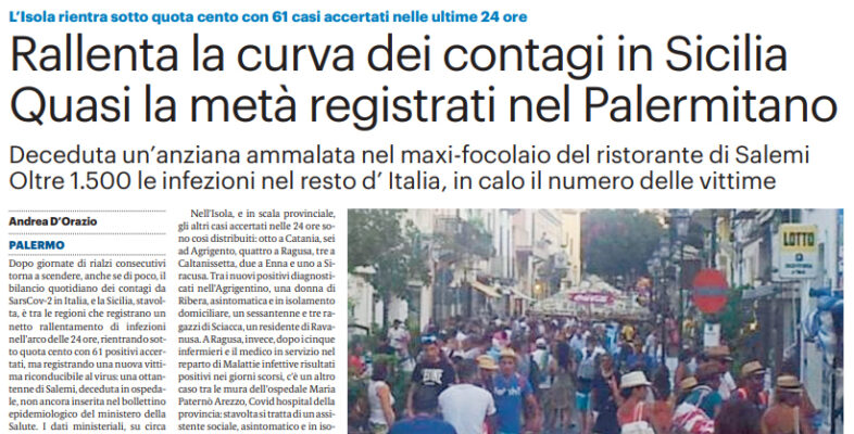 L’edizione odierna del “Giornale di Sicilia” parla della situazione Coronavirus un Sicilia.