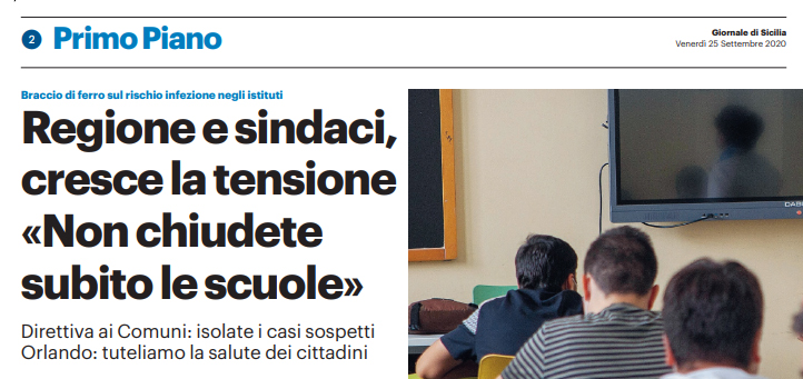 Gds: “Sicilia. Regione e sindaci, cresce la tensione: «Non chiudete subito le scuole». Orlando: «Tuteliamo la salute dei cittadini»