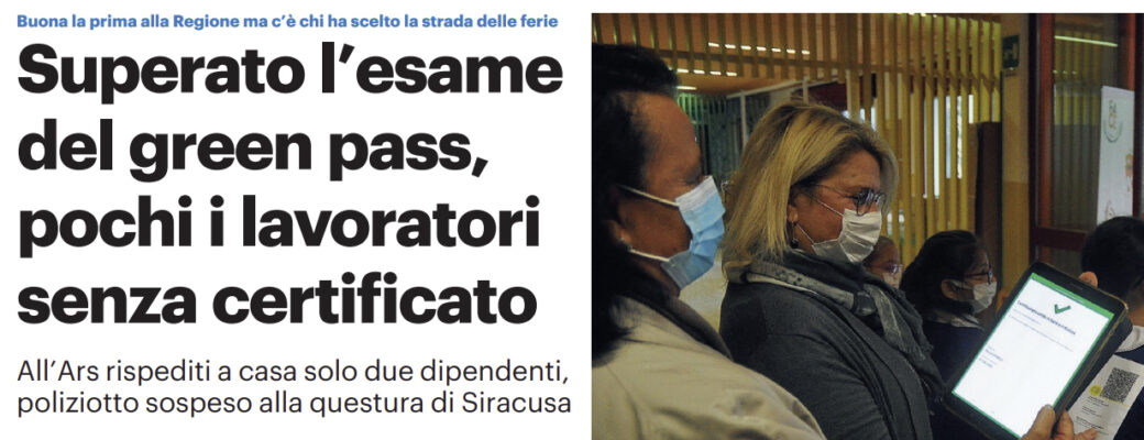 L’edizione odierna de “Il Giornale di Sicilia” traccia un bilancio del primo giorno di obbligatorietà del green pass sul luogo di lavoro.