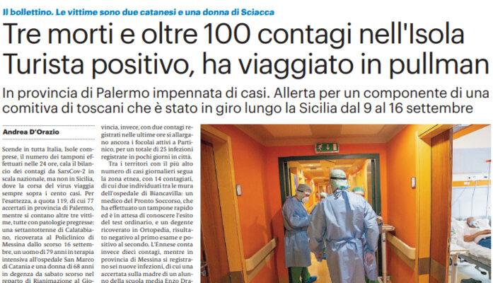 Gds: “Sicilia. Tre morti e oltre 100 contagi nell’Isola. Turista positivo, ha viaggiato in pullman”
