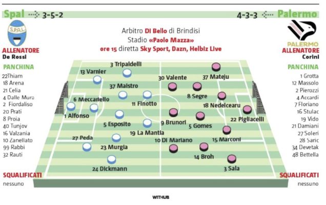 L’edizione odierna de “Il Giornale di Sicilia” si sofferma sulla gara tra Spal e Palermo stilando le probabili formazioni.