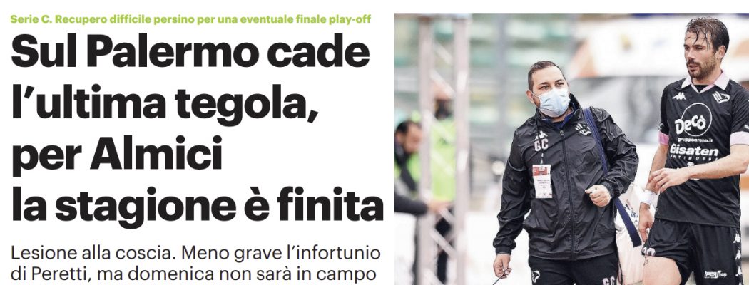 L’edizione odierna del “Giornale di Sicilia” si sofferma sull’infortunio di Alberto Almici, esterno del Palermo.