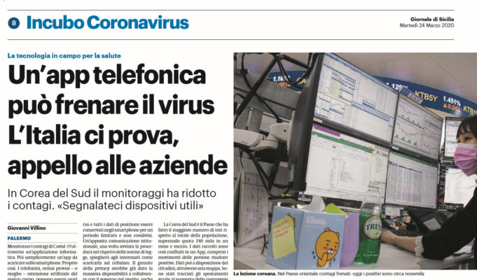 L’edizione odierna del “Giornale di Sicilia” si sofferma sull’applicazione informativa da scaricare sullo smartphone che potrebbe frenare l’avanzata del virus. Partendo dai dati di geolocalizzazione, ovvero dalle indicazioni rilevate tramite satellite o celle telefoniche sulla posizione dello smartphone, si potrebbe passare all’individuazione di eventuali movimenti e interazioni. In Italia pare che il tracciamento potrebbe essere sviluppato con una app, di cui esisterebbe già un prototipo, che non richiederebbe la profilazione dei dati, come invece accaduto in Paesi come Cina, Taiwan, Corea del Sud e Singapore. L’app dovrebbe essere scaricata sui cellulari dei cittadini che risultino ufficialmente contagiati dal virus e tutti i dati di posizione essere conservati negli smartphone per un periodo limitato e non condivisi. Un’apposita comunicazione istituzionale, una volta avviata la procedura nel rispetto delle norme di legge, spiegherà agli interessati come scaricarla sul cellulare. Il garante della privacy avrebbe già dato la massima disponibilità a collaborare con il governo nel merito, anche perché saranno necessarie, qualora si decida di procedere su questa strada, alcune modifiche della normativa vigente sulla privacy. Modifiche che il governo potrebbe decidere varando un apposito decreto, ancora non definito. I cittadini che risulteranno ufficialmente positivi al coronavius dovranno segnalare i loro spostamenti, e tramite la app le autorità potranno fare i controlli incrociati con le reti wifi e telefoniche per verificare se nel corso di questi spostamenti ci siano stati contatti con altre persone: che potranno a loro volta essere avvertite per sottoporsi eventualmente ai controlli sanitari. Intanto in Italia aziende, università, enti e centri di ricerca pubblici e privati, associazioni, cooperative, consorzi, fondazioni e istituti… sono stati chiamati a raccolta dal governo, in modo virtuale. È arrivato un nuovo invito per individuare tecnologie che possano essere utili al monitoraggio e al contenimento del virus. Si chiama «Innova per l’Italia». Un’iniziativa congiunta del ministro per l’Innovazione tecnologica e la digitalizzazione Paola Pisano, del ministro dello Sviluppo Economico Stefano Patuanelli e del ministro dell’Università e Ricerca Gaetano Manfredi.