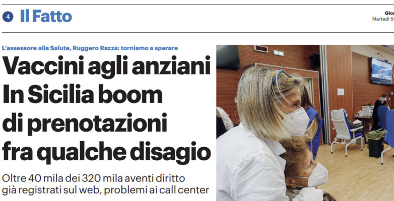 Gds: “Vaccini agli anziani. In Sicilia boom di prenotazioni e qualche disagio”