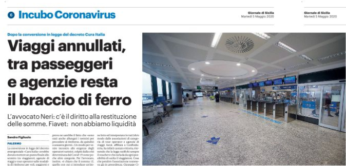 L’edizione odierna del “Giornale di Sicilia” parla anche della questione rimborsi per i passeggeri che hanno prenotato un viaggio. Secondo l’avvocato Carmelo Neri, dello studio legale palermitano Hublex, che si è occupato del tema, «la conversione in legge ha confermato il diritto dei viaggiatori al rimborso delle somme già versate». E prova ne sarebbe il fatto che «sono stati anche allungati i termini per procedere al rimborso, da quindici a sessanta giorni». Un modo per venire incontro alle esigenze degli operatori turistici, colpiti dalla crisi determinata dal Covid-19 come poche altre categorie. Per l’avvocato, inoltre, «è chiaro che il comma 12, quello con cui si introduce un’imposizione del voucher, non può mutare il significato dei commi precedenti, dal primo al settimo, coi quali si indica il voucher come ipotetica alternativa al rimborso».