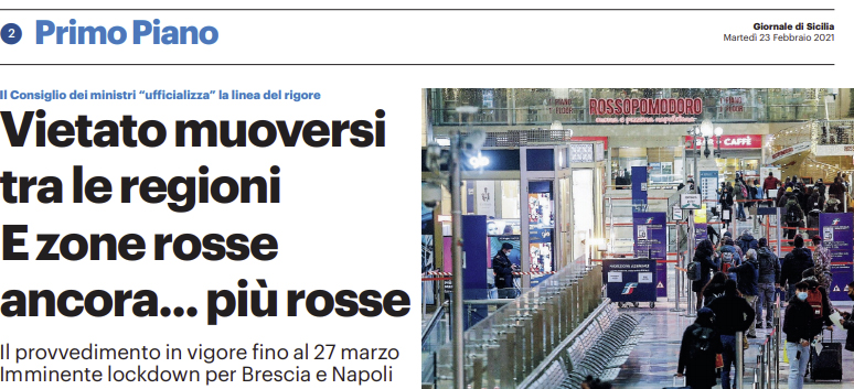 L’edizione odierna del “Giornale di Sicilia” si sofferma sull’emergenza Coronavirus in Italia.