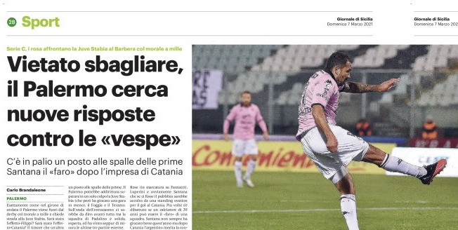 L’edizione odierna del Giornale di Sicilia si sofferma sul match odierno del Palermo che affronterà al Barbera la Juve Stabia.