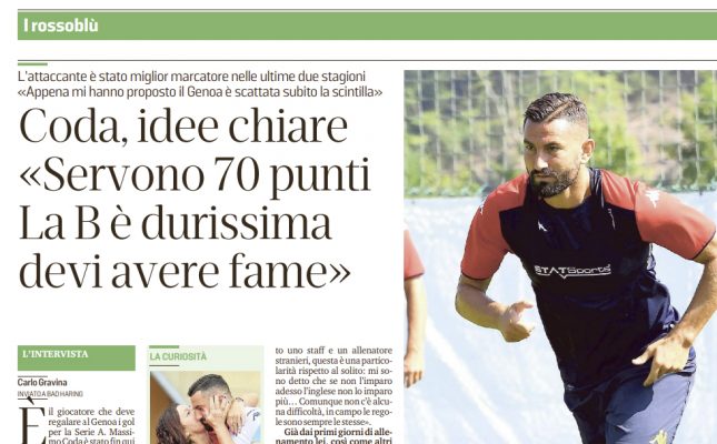 L’edizione odierna de “Il Secolo XIX” riporta un’intervista a Massimo Coda, colpo di mercato del Genoa.