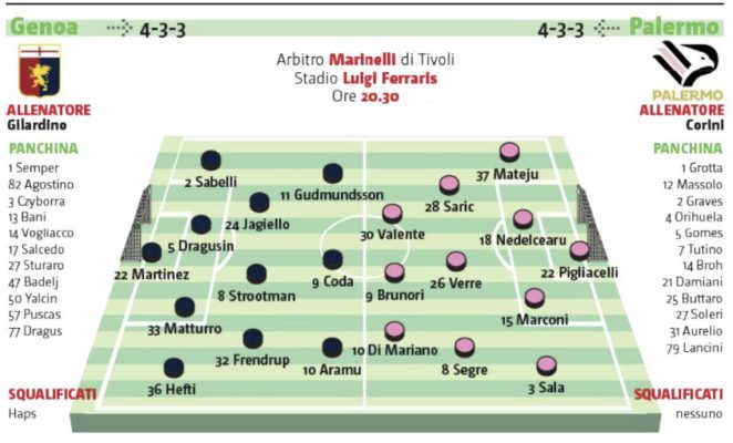 L’edizione odierna de “Il Giornale di Sicilia” si sofferma sulla gara tra Genoa e Palermo stilando le probabili formazioni.